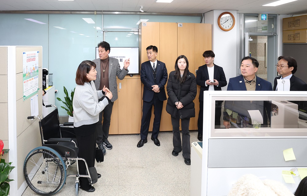 현장을 둘러본 위원들은 신설 사무실의 열악한 접근성에 대해 우려를 나타냈다. 현장에 동행한 장애인복지과장은 “사무실 입구가 매우 협소해 일반 휠체어조차 이동이 어렵고, 전동 휠체어의 경우 출입이 사실상 불가능한 상황”이라며 “사무실 내부 활동 공간 역시 제한적이어서 민원인들이 큰 불편을 겪고 있다”고 설명했다.
