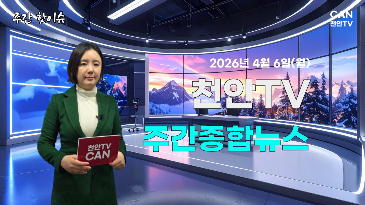 [주간핫이슈] 천안TV 주간종합뉴스 4월 6일(월) 기사입력 2026.04.06 09:00 댓글 0 [아산신문-천안TV] 천안TV 주간종합뉴스 4월 6일(월) ■ 방송일 : 2026년 4월 6일(월) ■ 진행 : 신소영 아나운서 ■ 카메라 : 홍순용 ■ 영상편집 : 박인규 [신소영 아나운서 기자 @] 이 기자의 다른 기사 보기 <저작권자ⓒ아산신문 & www.assinmun.kr 무단전재-재배포금지. > BEST 뉴스 “오세현 3대 의혹 해명하 ·[뉴스픽] 오세현 재도전…안장헌 토론 맞불 ·국민의힘 충남, 경선 판 짰다 ·안장헌 “중동발 위기 대응…아산 산업 공급망 지키겠다” ·“청년위원장 선거 개입 의혹”…아산시의회, 오세현 시장에 해명 촉구 ·“민주당 충남지사 경선 D-1”…권리당원·도민 ARS 투표 진행 위로 목록 이름 비밀번호 자동등록방지 70290 등록